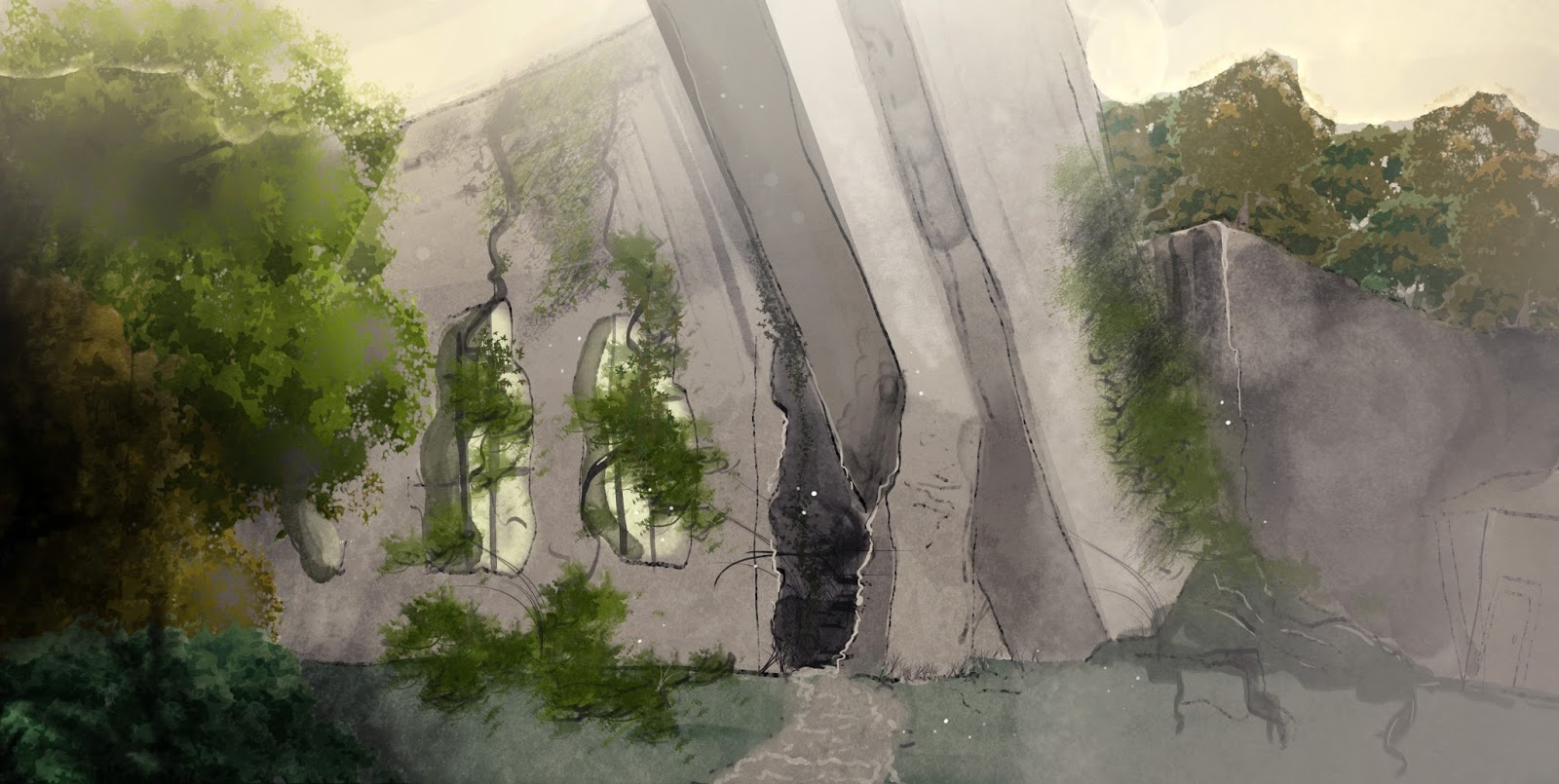 Stairs that I designed for a flashback scene that explained the time the disaster happended. The design is symmetric and clean which reflects the world before the disaster.
